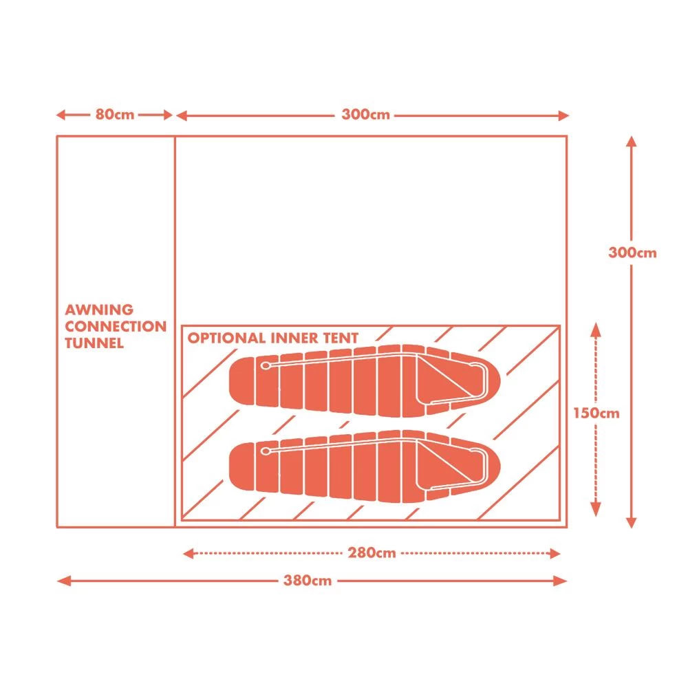 Our UPDATED Khyam Kamper Compact 2 Man Pole & Sleeve Drive Away Awning has been specifically designed for small and medium-sized camper vans. It is a favourite within the Pole and Sleeve Range, offering quick and simple setup with its fibreglass construction. With a headroom height of 230cm and a footprint of 3x3m, it provides ample space and comfort.
