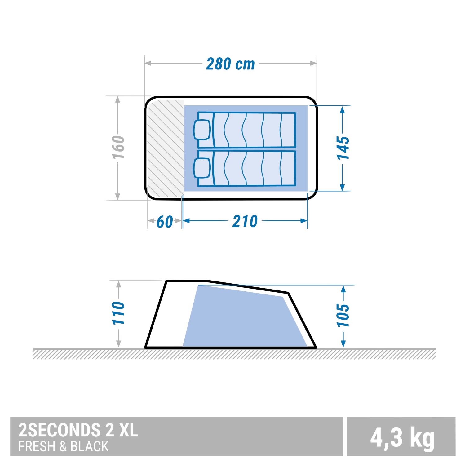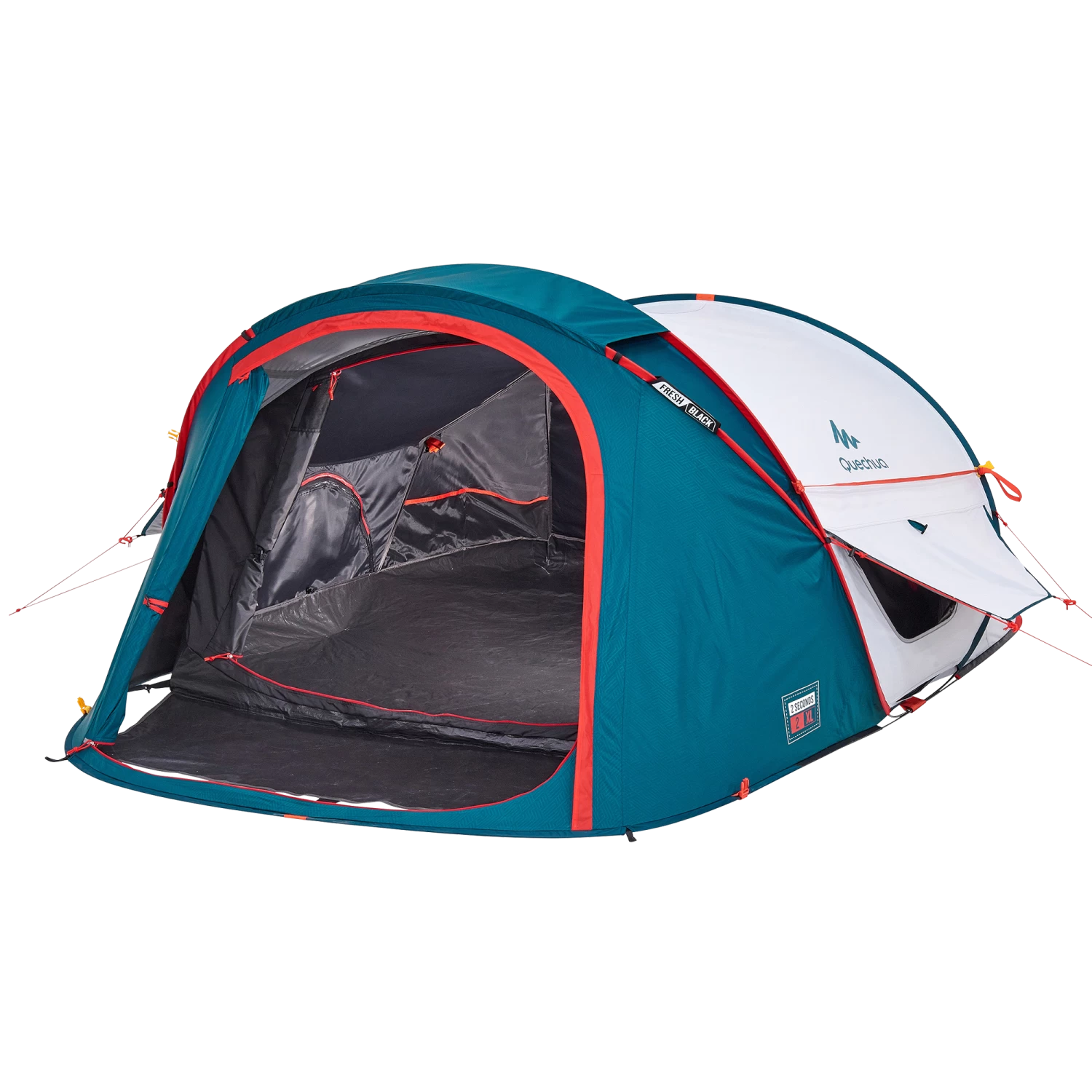 Our designers have spent time developing this two-person tent that you can pitch in just a few minutes. It gives you guaranteed mobility.Give yourself comfort, spacious rooms and good height. Leave your bags in the entrance without worrying about damp, thanks to the porch. And the guided folding system gives convenience as you leave.