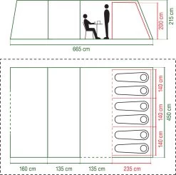 The ventilated flysheet on the living area airs the room and reduces condensation inside your tent. Outside each bedroom is a high ventilation hatch. Inside each bedroom is a large, low ventilation hatch. The living room comes with a mosquito net and the bedrooms with high mosquito nets.