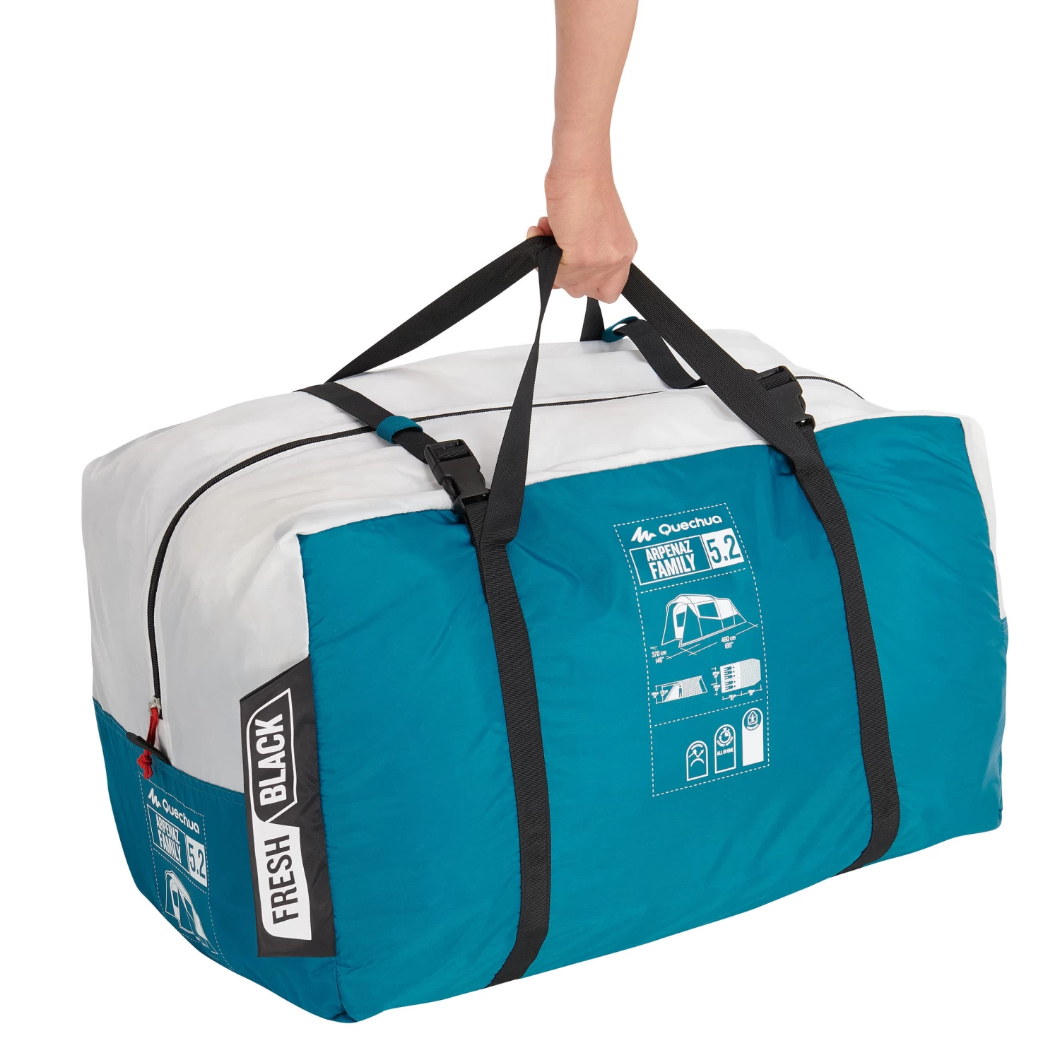 Our team of campers designed this Arpenaz 5.2 Blackout tent with poles for up to five campers wanting two separate pre-assembled bedrooms and a spacious livingA tent with poles that is easy to pitch and features Fresh&Black technology. It results in less heat and light in your tent, so you can decide just when to get up.