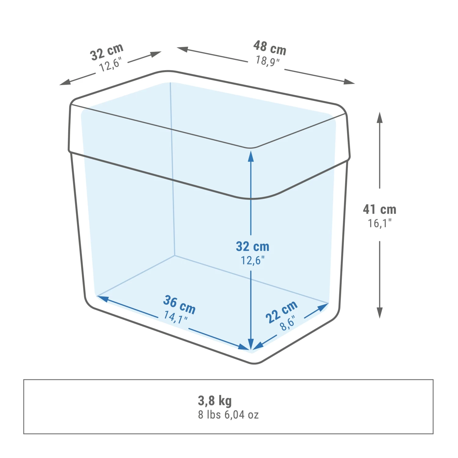 Internal dimensions: Length: 36 cm | Height: 32 cm | Width: 22 cm