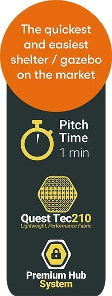 It has all the benefits from the premium Quest No-Chill mesh panels, with additional sewn in and fully zipped Quest-Tec 210 sidewalls. This gives you an un-rivalled anount of options. You can roll the sidewalls down for complete privacy. Open the external blinds on the windows to allow light and views in, or roll the entire sidewall up to reveal the premium quest No-Chill mesh sides allowing it to be warmer in the wind and cooler in the sun.