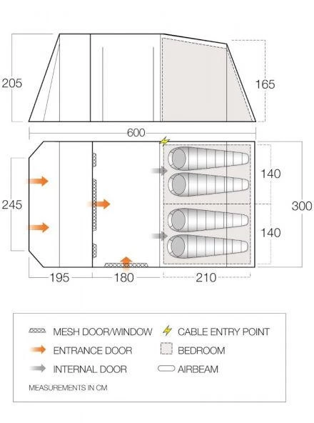 Cable Entry Point – Neatly feed electrical cables into your awning allowing you to easily keep your camping appliances powered